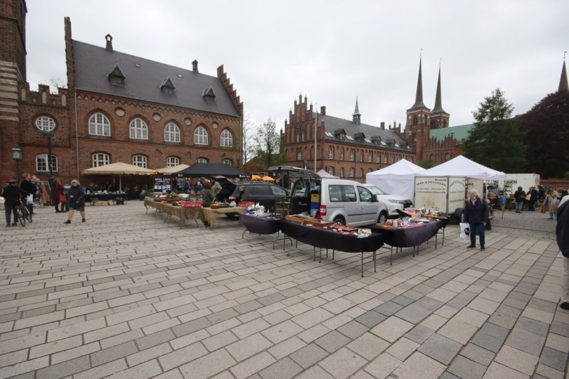 There is a square close to the cathedral which had a little market going on during this Saturday – I guess there is a little market on every Saturday and Wednesday. We didn’t go to do any shopping but it did give a little life to the square. Next to the square there is a large yellow building. It was built as a royal mansion for King Christian VI who used the mansion when he went to Roskilde for a burial in the royal family or if he was just passing by on other business on his way to or from Copenhagen. Today the mansion has been transformed into a museum and the royal family will have to commute when they go to a funeral in the city.