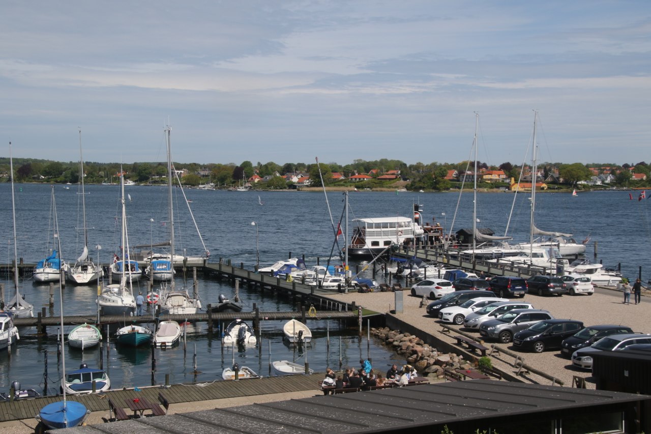 We drive across the large bridge from Svendborg to the island of Tåsinge. A short drive along a small road brings us to an old village called Troense. The village is located right at the water and there is a small harbor in the city where the locals seem to have quite a lot of boats for such a small place. There is a pier where a tour boat lands. The boat brings passengers from Svendborg to a few small harbors on other islands in the neighborhood until it reach the castle Valdemars Slot.
