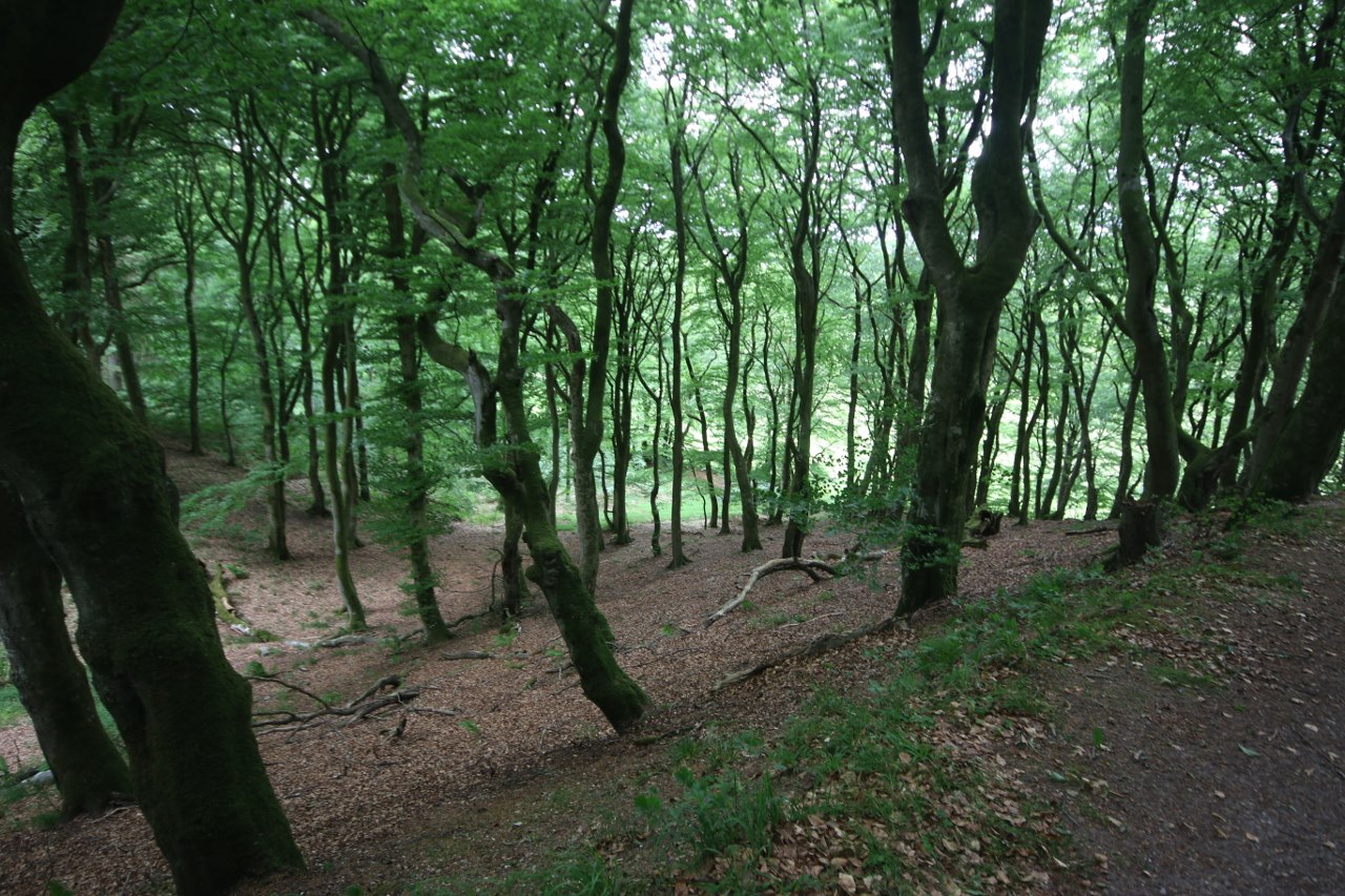 The old manor house used to have a bit of a forest as well. Back a couple of hundred years ago Denmark had been almost completely deforested. Almost all forest around the country had been cleared away to make way for agricultural land. Considering the lack of forest during this period it is very unusual to find old growth forest anywhere in Denmark. but right here is a little area which used to be covered in forest more than two hundred years ago – and the trees has been left behind so there is some old growth forest here. The trees are old and in strange shaped so it has earned the name troll forest.