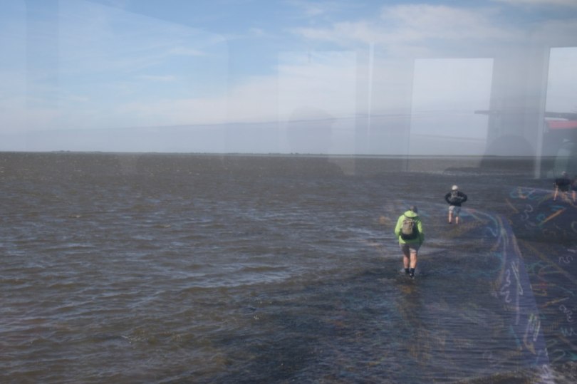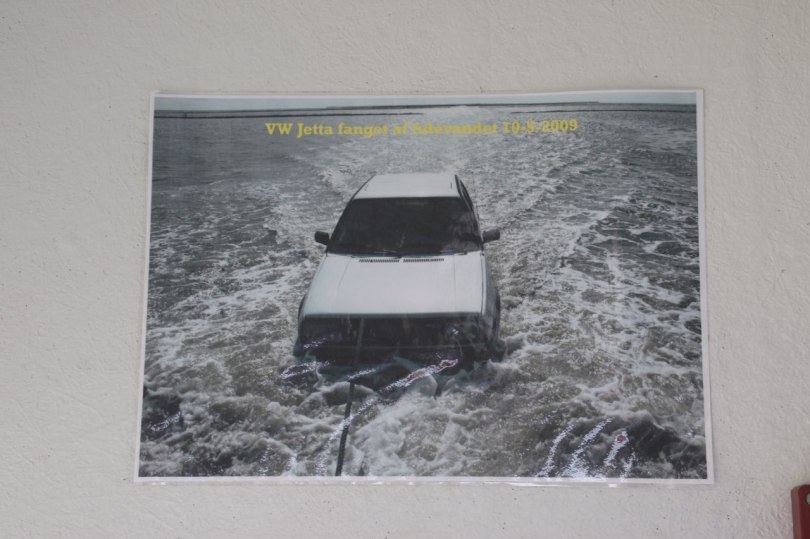 Inside the tractor bus they had displayed some old photos of cars who thought they could make it across before the tide – but didn’t quite make it and had to be pulled free by a tractor. The last photo was about 10 years old – but I still felt we had made the right choice in going by the tractor.
