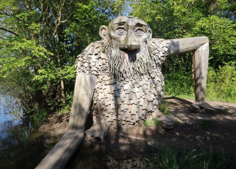 Teddy is lending his arm to help the visitors to the area over a little stream so you can walk across it without getting wet – so indeed he is a friendly big troll. Actually you can cross the stream safely a few meters down the stream where there is a bridge – but it might be more fun to use Teddy’s helping arm.