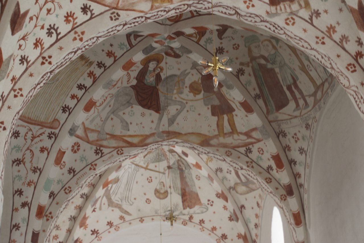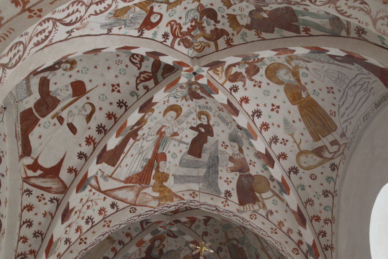 There are several old churches on the small island of Møn some of them have a lot of paintings inside. You can find some nice medieval paintings on three different churches on the island.