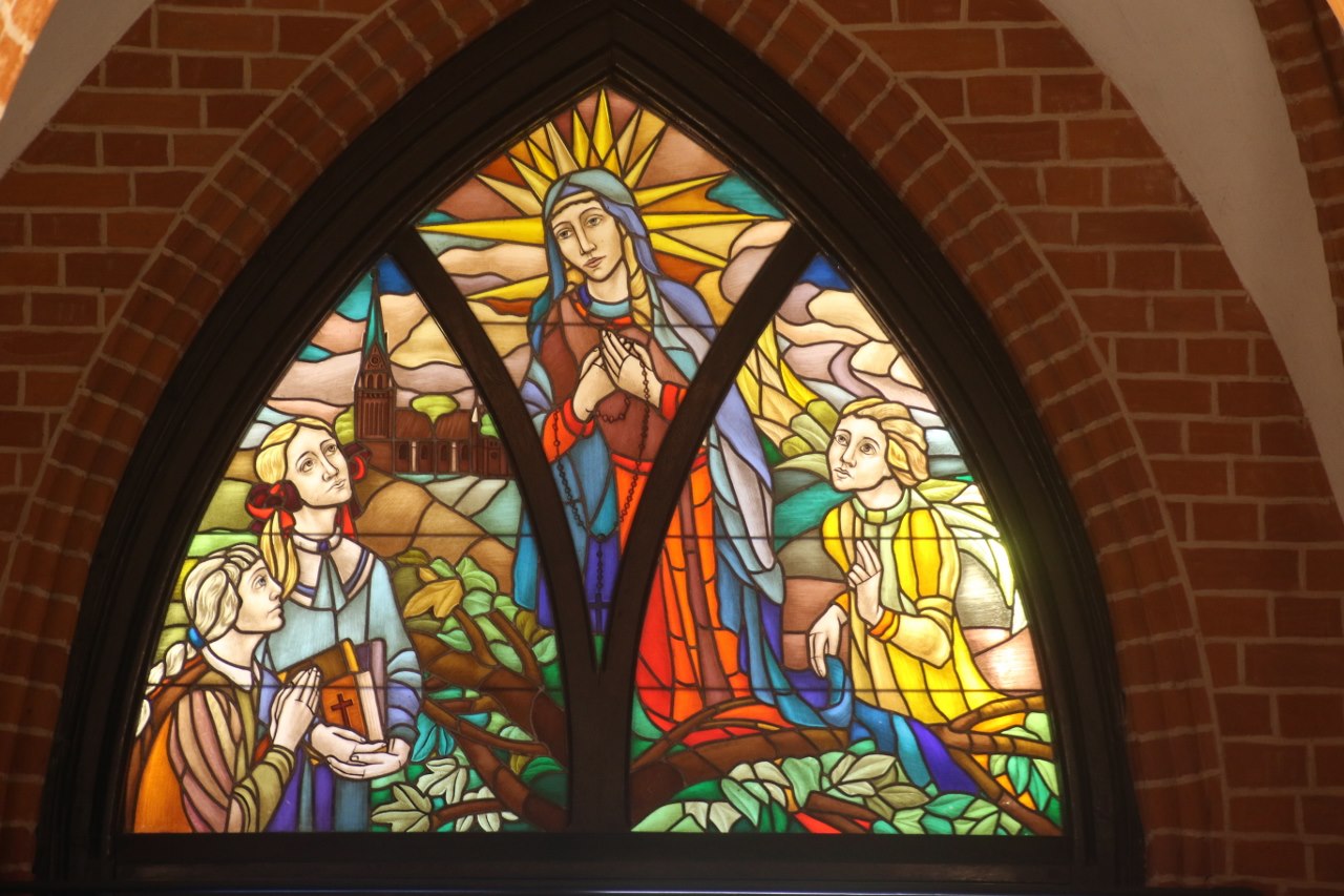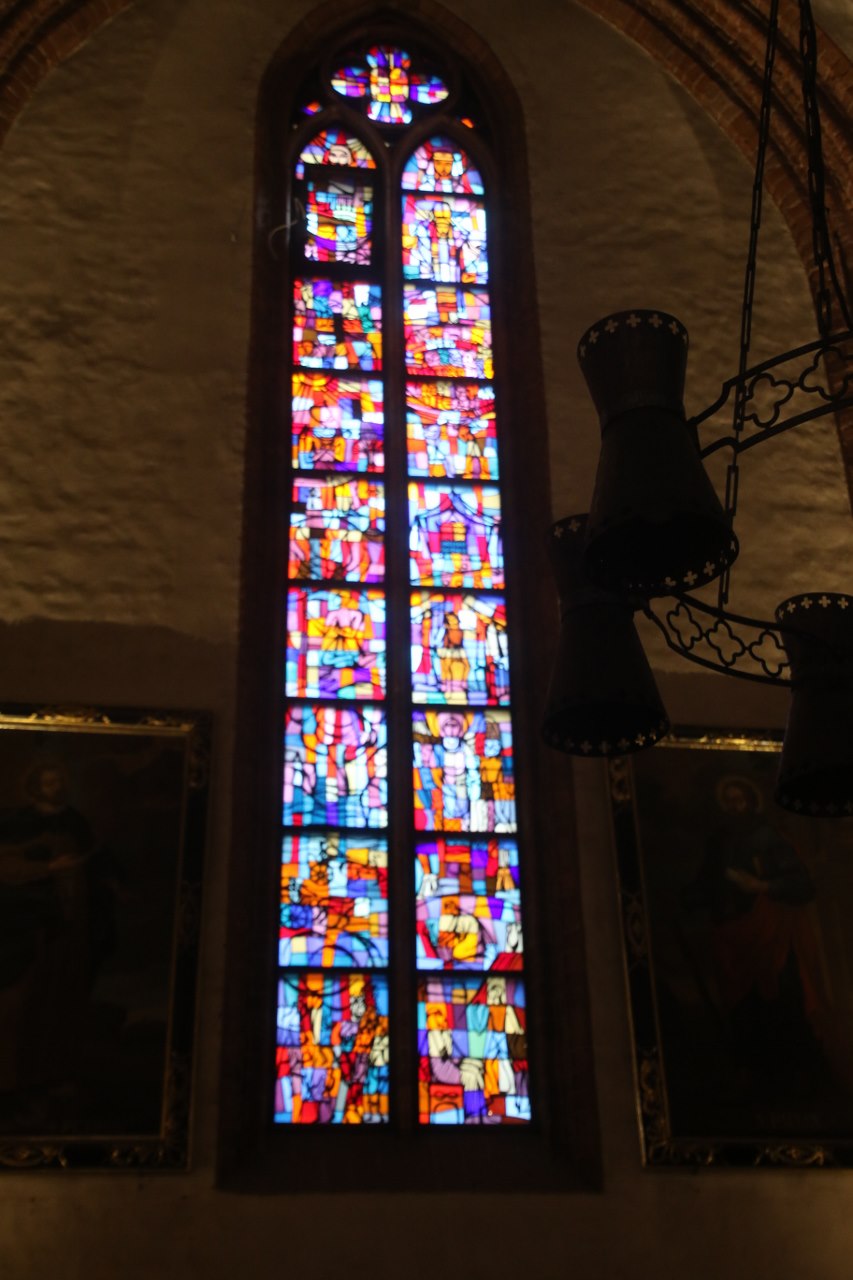 The inside of the church is interesting to go and see with large colourful windows inside the church. It is free to enter the church and it is worth spending a little time inside during a walk around the old town of Olsztyn.