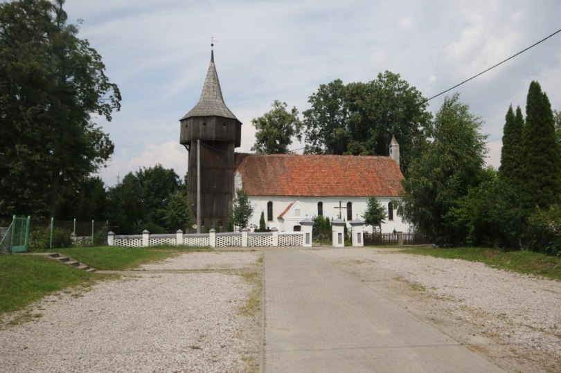 We drive away from Lidzbark Warminski through the Polish country side – there isn’t a lot of thinks to see but suddenly we get to the small town of Klebowo. There isn’t a lot to see in the town but we notice an old church right next to the road.