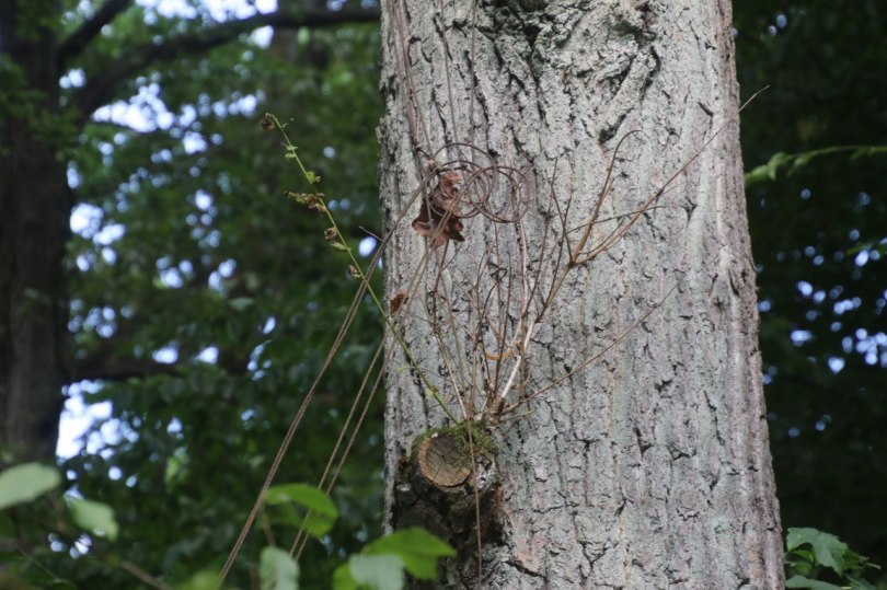 Walking into the area we quickly spot a little wire up in a tree – apparently this used to hold up some camouflage which had been put up to keep the area invisible from the air.