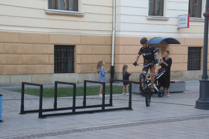 The bike performer was by far the one attracting the largest crowd of the different street performers.