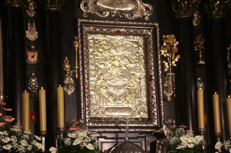 The Madonna was covered behind a golden cover which prevented us from seeing it. Then the unveiling started and the golden colour slowly started to move up. Slowly bit by bit the Madonna would become visible again for a while. After a couple of minutes the process was finally over and we could see the Madonna.