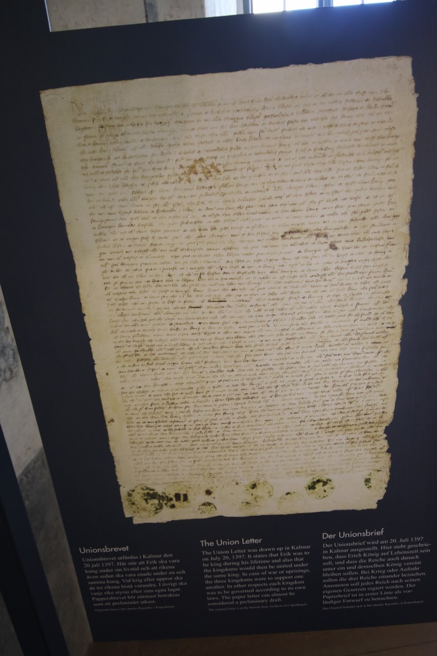 When you visit the castle today it has been transformed into a museum and one of the important places to see in this museum is the room in which they signed the Kalmar Union back in 1397. The room has the most important items on display you can find. There is a dress of Queen Margrethe I and you also find two important letters. One is the coronation letter of King Erik of Pomeria who was the formal king though Margrethe was the true ruler. The second letter is the letter of the Union of Kalmar.