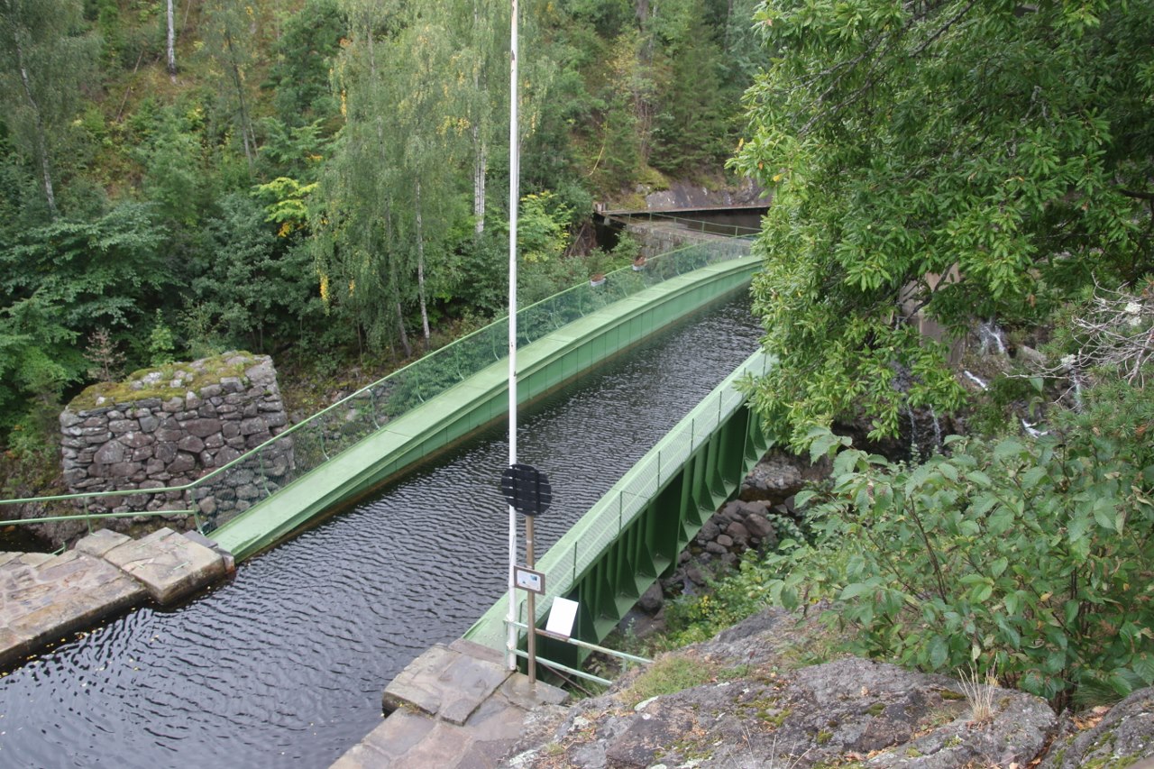 When you first see the aqueduct you might think it is bridge – but in fact it is an artificial river making it possible for minor ships to go through this area. It is interesting to see this piece of engineering which is pretty unique for the Swedish canal system. The aqueduct actually has a pretty location at a small canyon which is crossed by a major bridge which let the modern day traffic cross the old canal system.